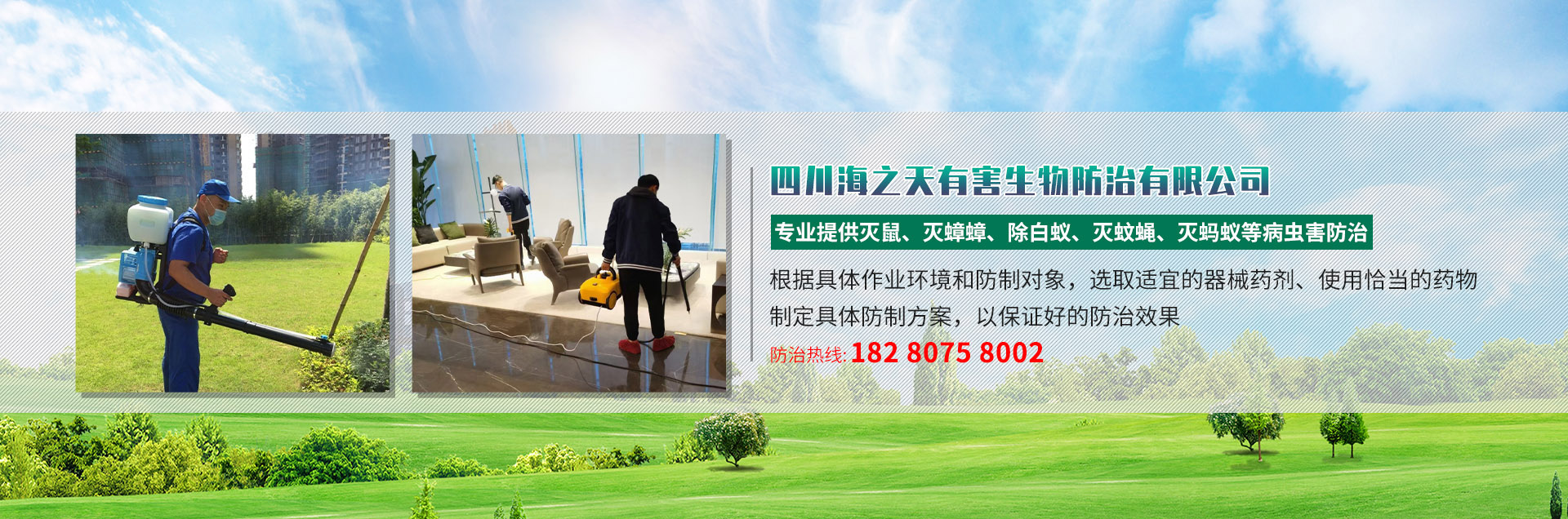 四川海之天有害生物防治有限公司坐落于美麗的科技城綿陽(yáng),公司老板從事本行業(yè)十余年,有著豐富的經(jīng)驗(yàn)和專(zhuān)業(yè)的團(tuán)隊(duì)。本公司使用的藥物,均系經(jīng)國(guó)家藥檢部門(mén)和衛(wèi)生防疫部門(mén)批準(zhǔn)的安全、低毒的城市衛(wèi)生用藥,并根據(jù)具體作業(yè)環(huán)境和防制對(duì)象,選取適宜的器械藥劑、使用專(zhuān)業(yè)的藥物,制定具體防制方案,以確保好的防治效果。內(nèi)、外環(huán)境所用藥物:安全、低毒、無(wú)味無(wú)刺激、環(huán)保、高效果、無(wú)污染,對(duì)住宿的賓客,門(mén)診、住院的病人,學(xué)習(xí)、辦公的人員,都沒(méi)有不良刺激,特別適用于追求高質(zhì)量環(huán)境的賓館、飯店、醫(yī)院、機(jī)關(guān)、學(xué)校等場(chǎng)所! 經(jīng)營(yíng)項(xiàng)目:全市范圍內(nèi)即周邊城市的大型工廠(chǎng)、工業(yè)園、社區(qū),山莊,度假村,旅游景點(diǎn),賓館、飯店,公寓、寫(xiě)字樓、醫(yī)院、政府機(jī)關(guān)、餐飲業(yè)、食品加工業(yè)、倉(cāng)儲(chǔ)等各企事業(yè)單位上門(mén)消殺服務(wù),綜合治理,可以選擇一次用藥或包年服務(wù),以合理的費(fèi)用提供更好的服務(wù),讓我們一同攜手,共同創(chuàng)造美好、健康、潔靜的生活環(huán)境! 我們的理念:本公司采用生物滅蟲(chóng)、綜合用藥、除蟲(chóng)完善、藥效持久,安全、環(huán)保、對(duì)人畜安全無(wú)害,解決您的后顧之憂(yōu)。本公司提供專(zhuān)業(yè)技術(shù)人員免費(fèi)上門(mén)檢查白蟻、害蟲(chóng)服務(wù)!公司在國(guó)家規(guī)定節(jié)假日照樣安排有技術(shù)人員正常上班,歡迎拔打熱線(xiàn)咨詢(xún)18781110022